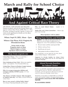 « All Events This event has passed. March and Rally for School Choice September 19, 2021 @ 10:00 am - 2:00 pm « Constitution Day Celebration Washoe County Board of Commissioners » Add to calendar Google Calendar iCalendar Outlook 365 Outlook Live Details Date: September 19, 2021 Time: 10:00 am - 2:00 pm Website: https://nvffsc.com/ Venue City Plaza, Downtown Reno 10 North Virginia St Reno, NV United States + Google Map
