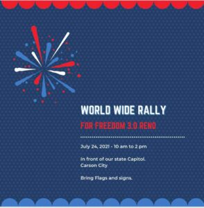 Saturday July 24, 2021 – 10am to 2pm in front of the State Capitol, Carson City